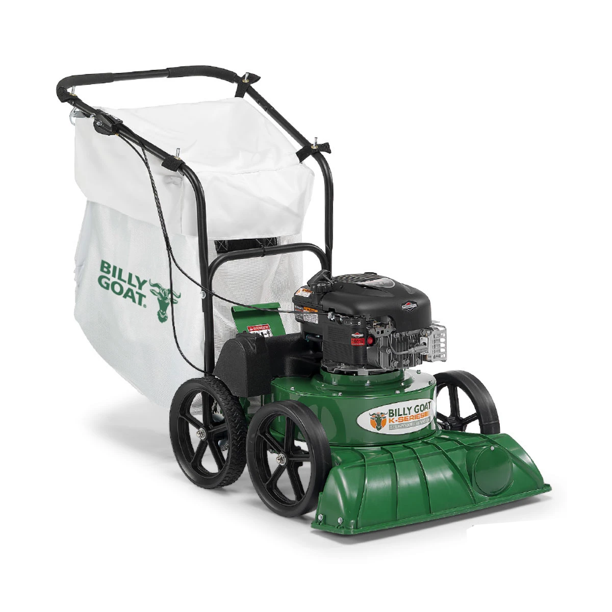Powerful suction and easy operation make clean up a snap for leaves, seeds, mulch, blooms, branches, litter and debris. Ideal for multi-surface residential and light commercial use, Billy Goat’s versatile 69cm / 27″ wide lawn and litter vacuum has variable height adjustment for hard surface or turf work. This billy Goat has 30cm /12″ tyres on this push vacuum make operation easy, even in a hilly environment. The KV601 vacuums are powered by trusted Briggs & Stratton engines.