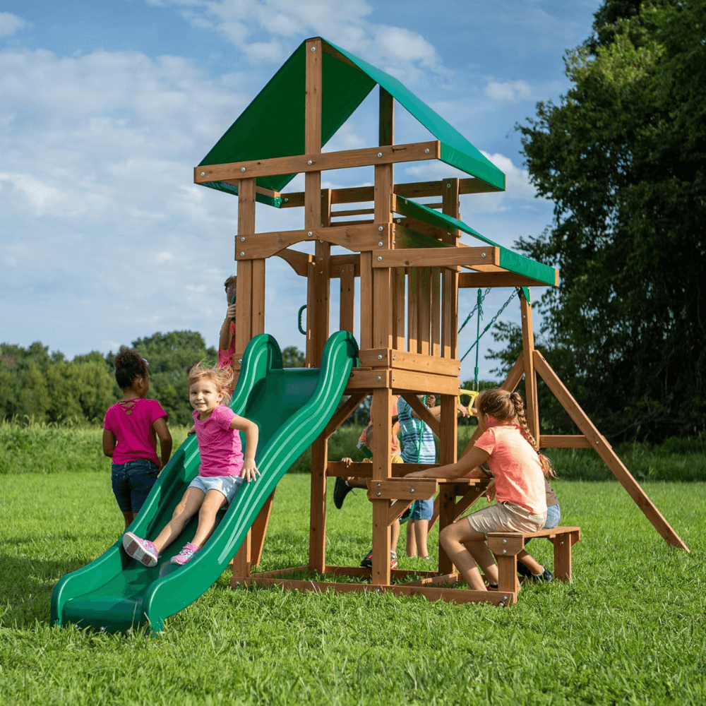 Give your children the gift of outdoor fun, creativity, and adventure with the Canyon Creek All Cedar Swing Set Playset—a place where memories are made, friendships grow, and imaginations soar!