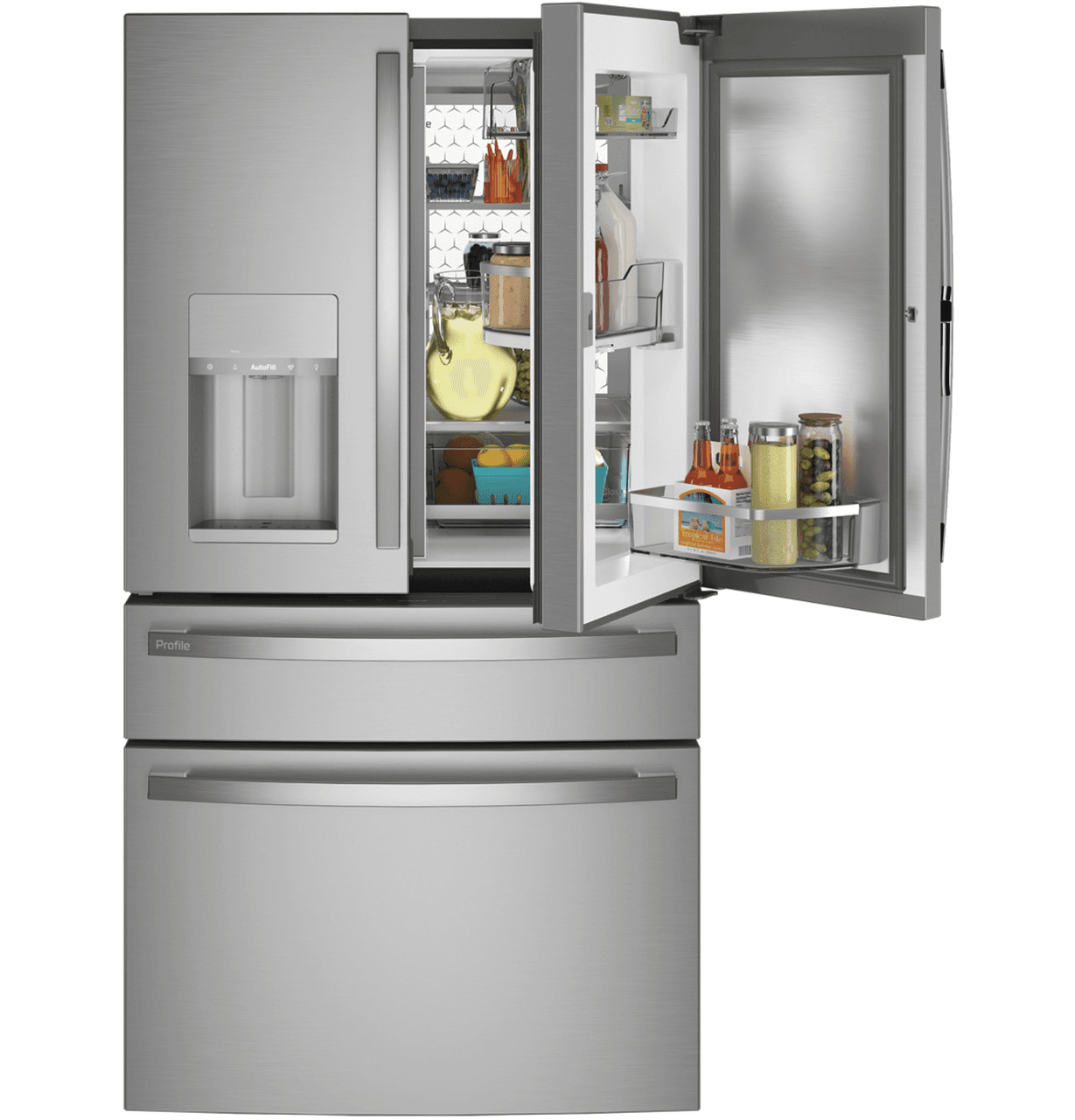 The GE Profile 27.9 cu ft Smart Fingerprint Resistant French Door Refrigerator is designed to bring modern convenience and style to your kitchen.