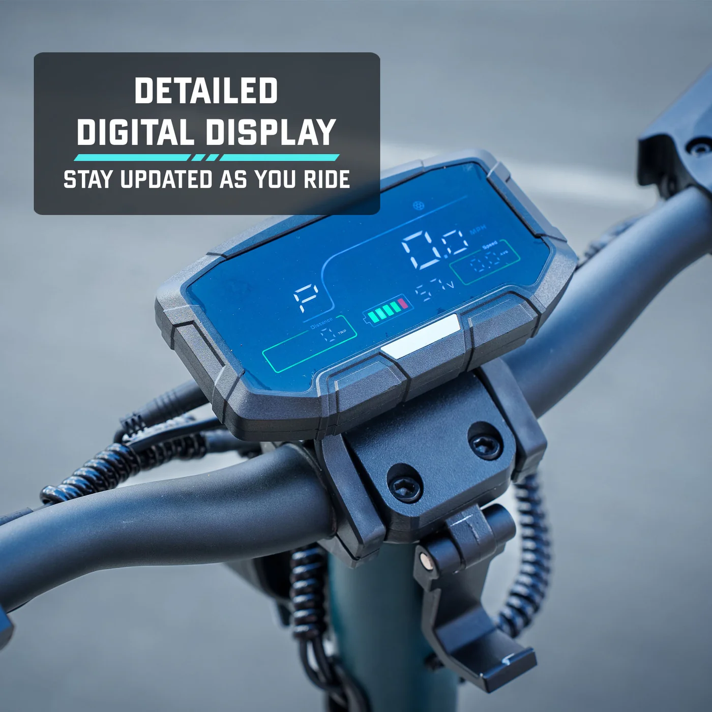 The conveniently-placed control console allows you to interact with the GX3’s digital display with ease. Control of your speed, headlights, motor mode, and more is right at your fingertips.