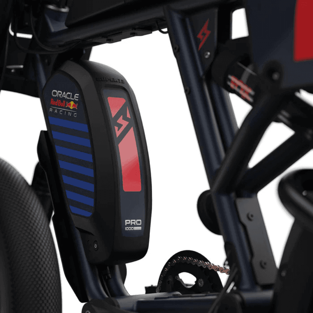 ntroducing the custom Oracle Red Bull Racing R Adventure Series—a striking blend of performance and style that redefines what it means to ride rugged. Merging Oracle Red Bull Racing’s adventurous spirit with SUPER73’s cutting-edge design and functionality, this one-of-a-kind model is the ultimate ride for adrenaline enthusiasts and thrill-seekers alike.