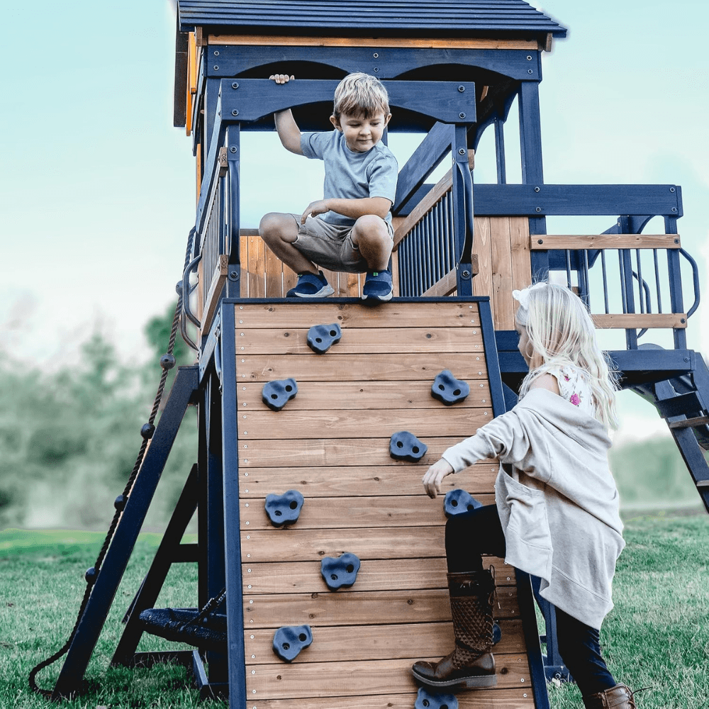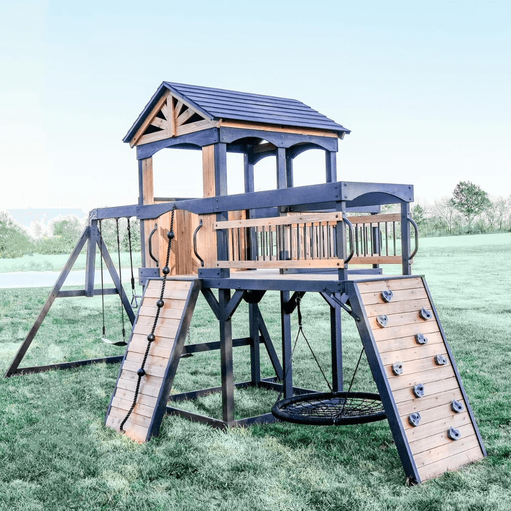 Elevate your backyard with the Timber Crossing Swing Set—a perfect blend of adventure, durability, and timeless design that brings families together for years of unforgettable playtime!