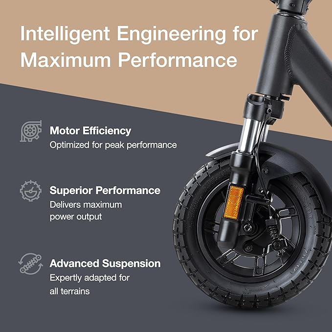- Unparalleled Comfort – VMAX VX4 electric scooters for adults features a front suspension fork offering up to 2″ of travel and paired with a responsive rear suspension, our scooter promises a premium riding experience. Expertly crafted to conquer all terrains, our suspension system ensures consistent comfort, regardless of the surface.