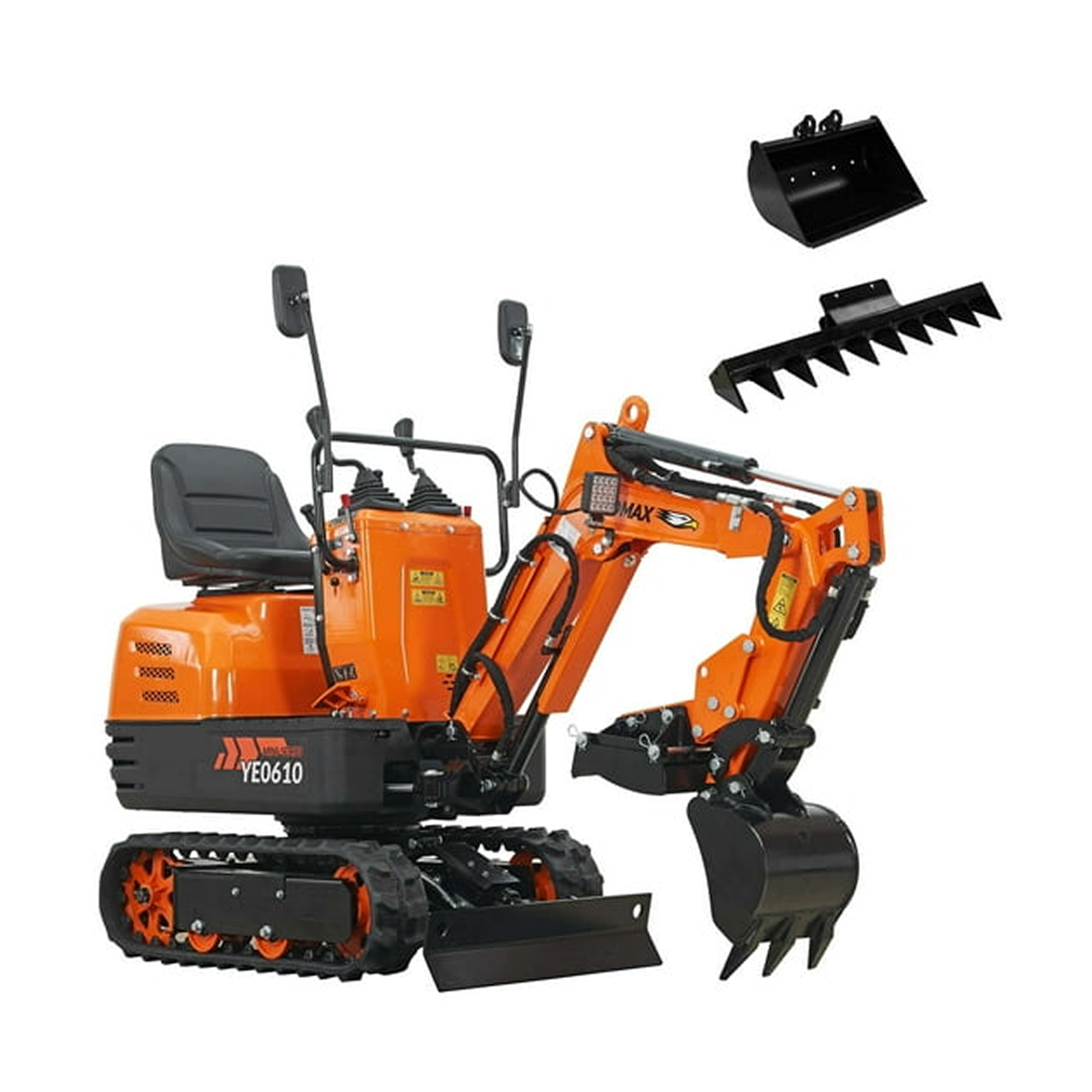 YARDMAX Mini Excavator with Claw Grading Bucket & Rake